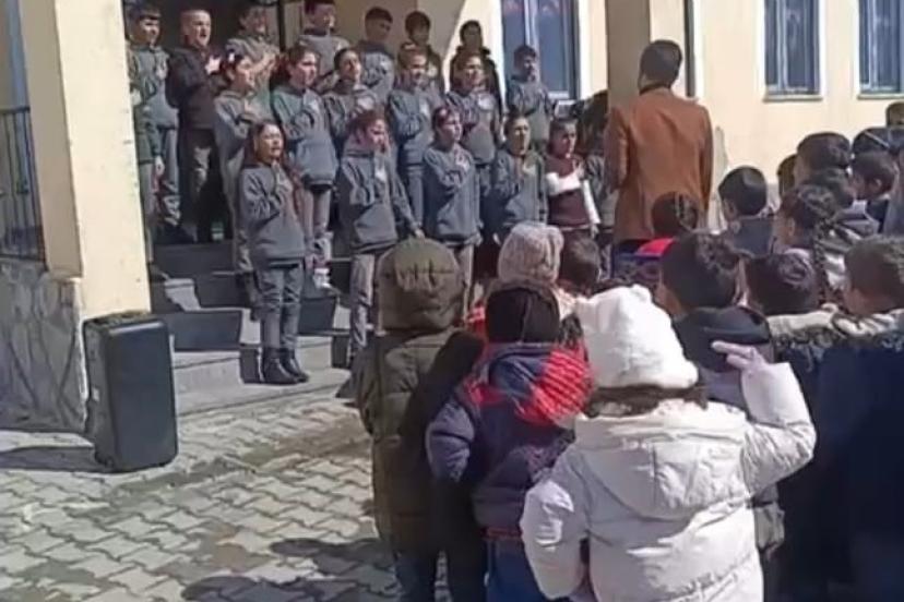 Ağrı’nın Taşlıçay ilçesinde bir ilkokulda düzenlenen Ramazan etkinlikleri sırasında ilahiye kendisini kaptırarak içinden geld...