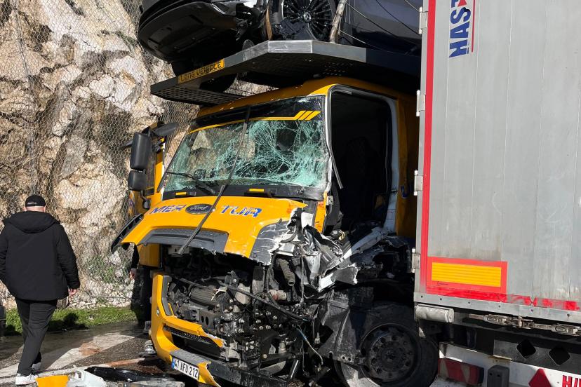 TIR'lar çarpıştı, sürücüler yaralandı