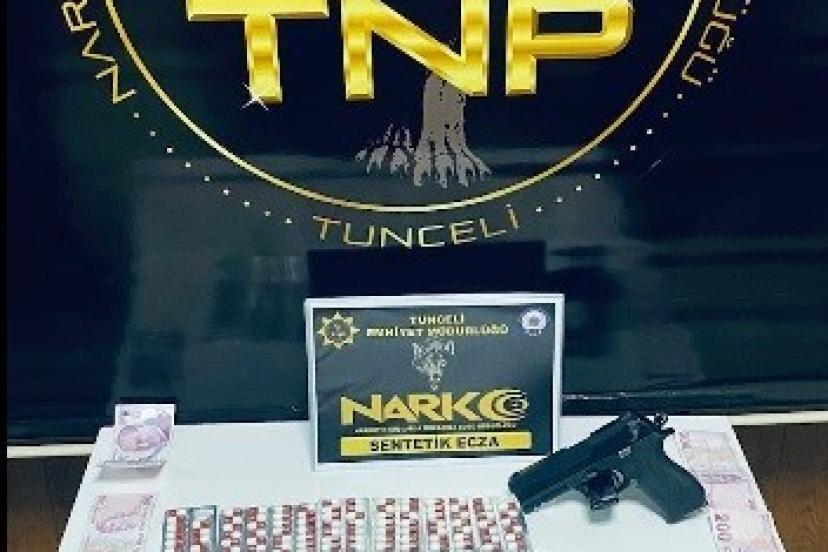 Tunceli İl Emniyet Müdürlüğü Narkotik Suçlarla Mücadele Şube Müdürlüğü ekipleri tarafından uyuşturucu madde ticaretine yönelik çalışmalar sürüyor. Bu çerçevede düzenlenen operasyonda, uyuşturucu madde ticareti yaptığı değerlendirilen şüpheli Y.İ.D. yakalayarak gözaltına aldı. Şüpheli şahsın üzerinde ve bağlantılı adreslerde yapılan aramalarda 183 adet sentetik ecza, 0,90 gram sentetik kannabinoit, 1,10 gram esrar maddesi ile 1 adet tabanca ele geçirildi. Olayla bağlantılı olduğu tespit edilen iki şahıs hakkında ’Kullanmak İçin Uyuşturucu Madde Bulundurmak" suçundan adli işlem yapılırken, Y.İ.D. çıkarıldığı adli makamlarca "Uyuşturucu Madde İmal ve Ticareti" suçundan tutuklanarak cezaevine teslim edildi.