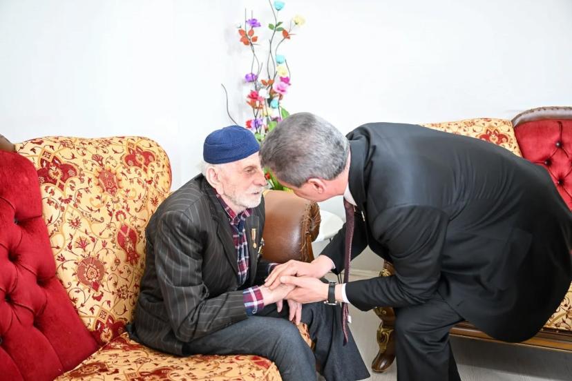 Ziyaret kapsamında kahraman gazi ile yakından ilgilenerek bir süre sohbet eden Vali Baruş, gazinin mübarek bayramını tebrik etti.