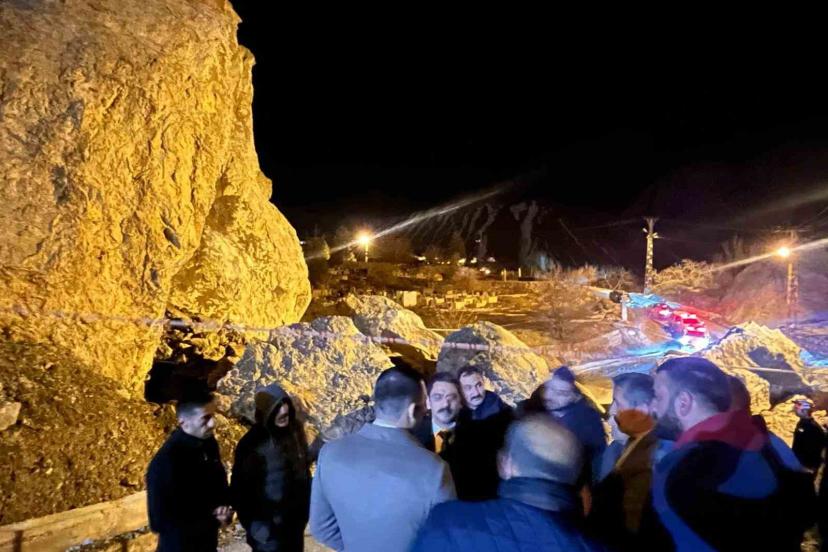 Vali yardımcıları dev kayaların düştüğü bölgede inceleme yaptı