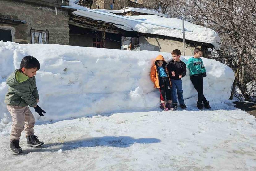 Öte yandan, büyükler karla mücadele yaparken, çocuklar ise karın keyfini çıkardı.