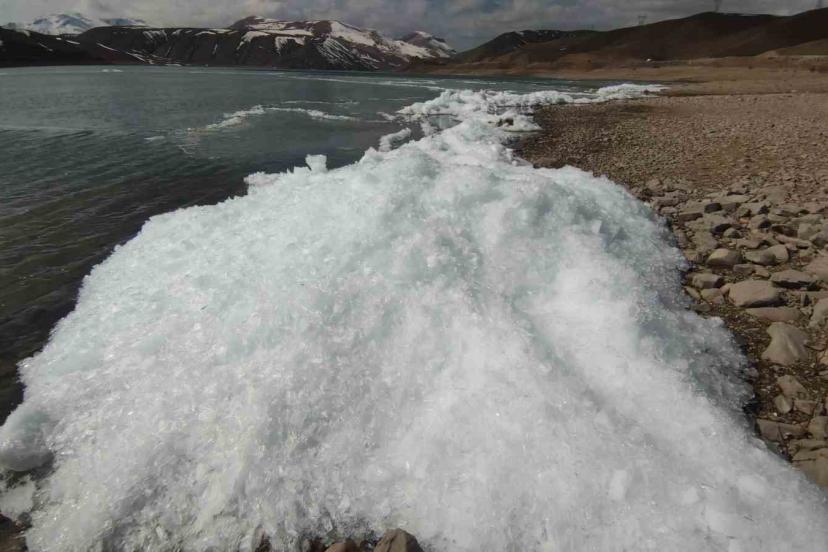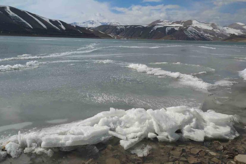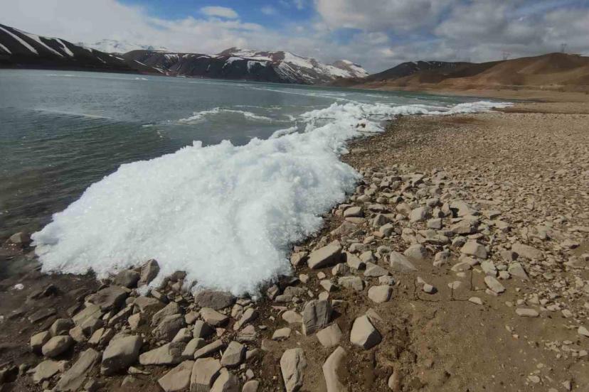 Doğu Anadolu Bölgesi’ni etkisi altına alan Sibirya kökenli soğuk hava dalgası, Van’da hayatı durma noktasına getirirken, ilginç görüntüler oluşturdu. Gürpınar ilçesinde bulunan ve bölgenin sulama ihtiyacını karşılayan Zernek Baraj Gölü, hava sıcaklığının gece sıfırın altında düşmesiyle tamamen buz tuttu. Göl yüzeyindeki suyun sadece yüzeyi donmakla kalmadı; rüzgarın etkisiyle kıyıya vuran dalgalar donarak kristalleşti. Ortaya çıkan manzara görsel şölen oluşturdu.
