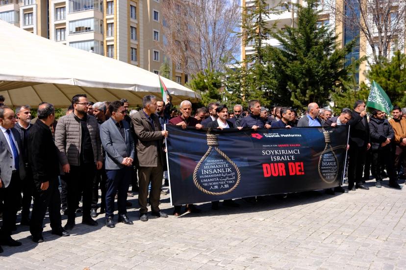 Platform adına basın açıklamasını okuyan Memur-Sen Van Şube Başkanı Mehmet Ali Uca, “Tüm değerlerin yok sayıldığı, çiğnendiği bir zaman diliminden geçmekteyiz.  İnsanlık adeta azgın ve sapkın bir ideoloji tarafından ne yazık ki rehin alınmıştır. Biz eser değiliz, bu esaret girişimine karşı kayıtsız kalacakta değiliz. Siyonist rejim şunu bilsin ki; zalimlerin topuna, canımızla, başımızla, elimizle aşımızla, varımızla yoğumuzla direneceğiz. Siyonist israil rejimi tarafından, Gazze’de işlenen soykırımın kahredici acısı vicdanlarda canlı dururken, Lübnan’da ve İran’da ortaya konan yeni vahşetler insanlığı bir kez daha derinden sarsmaktadır. 165 İranlı öğrencinin, siyonist rejim tarafından okul sıralarında katledilmesi ve bu katliamın küresel vicdanda yeteri kadar yer bulmaması bizleri derinden sarssa da, bugün burada olduğu gibi dünyanın dört bir yanından yükselen itiraz sesleri bir nebze olsun umudumuzu yeşertmektedir.” dedi.