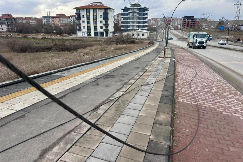 Mehmet Akif Üstündağ Caddesi üzerinde de yüksek gerilim hattı kabloları yere düşerken, şans eseri o sırada kaldırımda ve yolda kimsenin olmaması da olası bir facianın da önüne geçti.