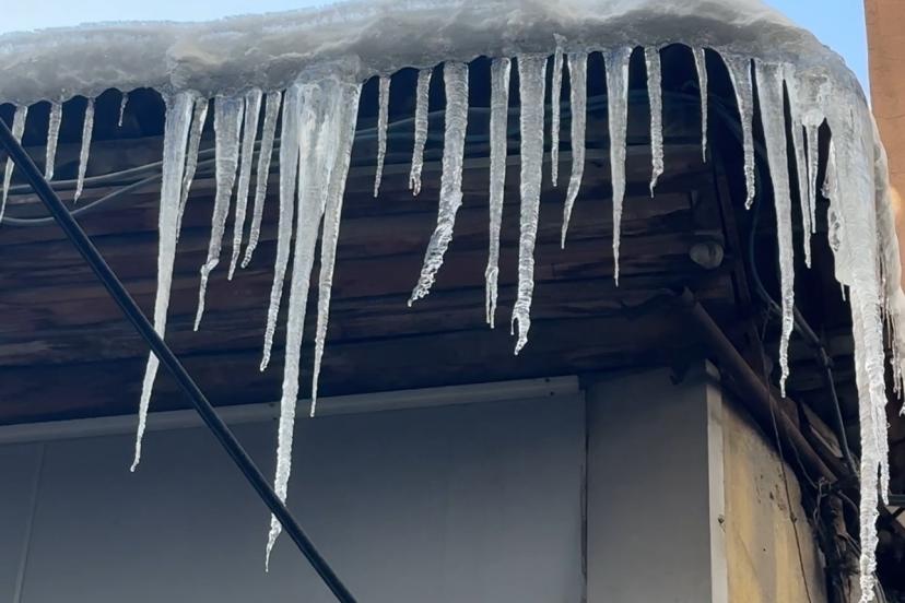 Hakkari’nin Yüksekova ilçesinde etkili olan dondurucu soğuklar yaşamı olumsuz etkilerken, bina çatılarında dev buz sarkıtları oluştu.