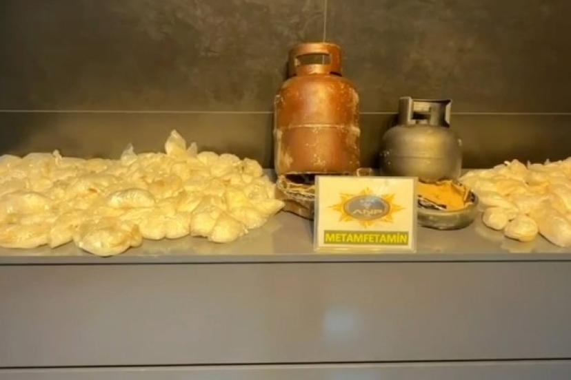 Ekiplerce il merkezinde durdurulan çekici ve dorsede gerçekleştirilen aramada, tüpler içerisine gizlenmiş toplam 108 paket halinde 8 kilo 300 gram metamfetamin bulundu.