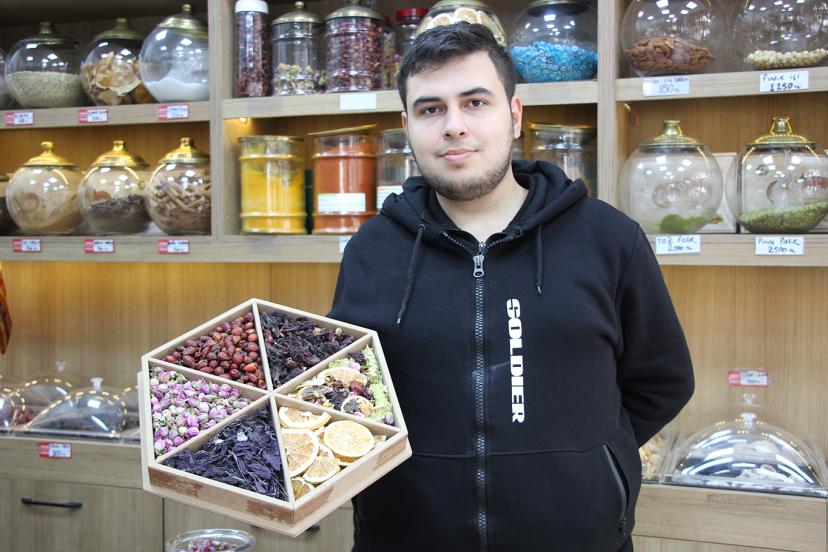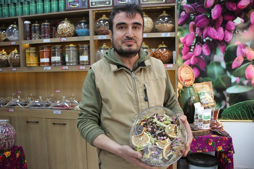 Gaziantepli yöresel doğal ürün satıcısı Hurşit Aktaş, mevsim geçişlerinde bağışıklık sisteminin zayıfladığına dikkat çekerek, bitkisel çayların bilinçli tüketilmesi gerektiğini vurguladı.