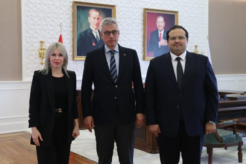 Rektör Prof. Dr. Özlenen Özkan, Ankara'da Sağlık Bakanı Kemal Memişoğlu'nu ziyaret etti. Rektör Özkan, üniversite içerisinde hayata geçirilen ileri tedavi altyapısı hakkında Bakan Memişoğlu'na kapsamlı bilgi verdi. Görüşmede, Rektör Özkan, Türkiye'nin sağlık alanındaki stratejik hedefleri doğrultusunda kurulan merkezin önemini vurguladı.