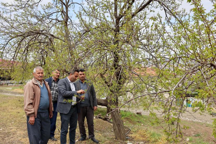 Mahallede zarar gören kayısı bahçelerinde incelemelerde bulunan heyet, üreticilerle bir araya gelerek yaşanan mağduriyet hakkında bilgi aldı. Dolu yağışının kayısı ağaçlarında oluşturduğu zararı yerinde değerlendiren Başkan Ulutaş, çiftçilerin sorunlarını dinledi.
