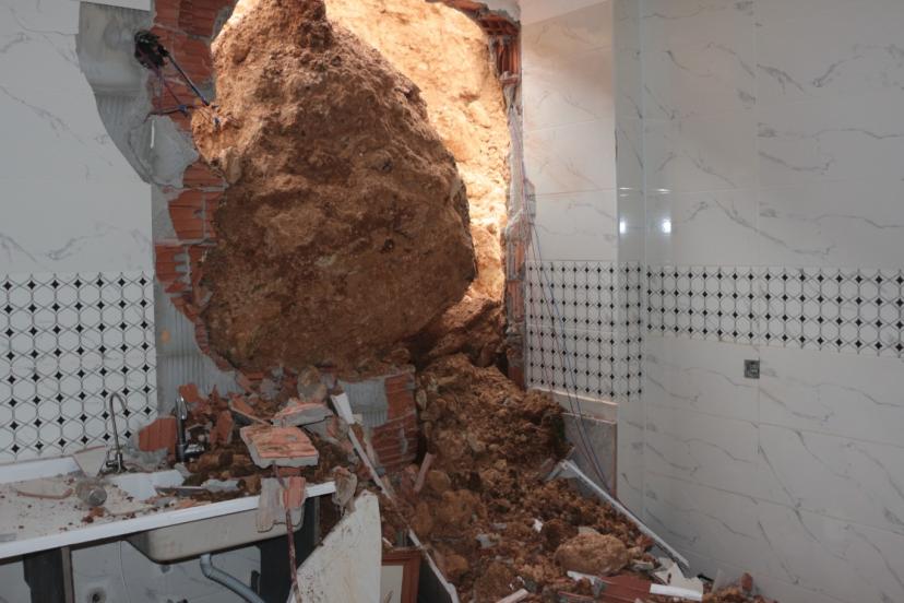 Bugün yaşanan ikinci heyelanda kaya parçalarının girdiği evin boş olması, olası bir can kaybının önüne geçti.