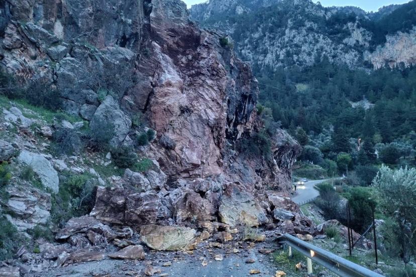 MUĞLA'nın Fethiye ilçesinde yamaçtan kopan kaya parçaları nedeniyle Ölüdeniz-Faralya kara yolu ulaşıma kapandı.