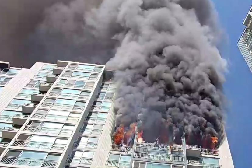 Uiwang şehrinde 20 katlı bir apartmanın 14'üncü katında yangın çıktı.