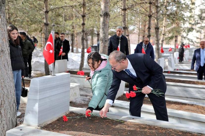Vali Ziya Polat ve beraberindekiler, ziyaret kapsamında şehit kabirlerine tek tek karanfil bıraktı. Şehit ailelerinin de yer aldığı ziyarette zaman zaman duygusal anlar yaşandı.