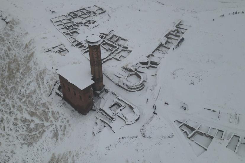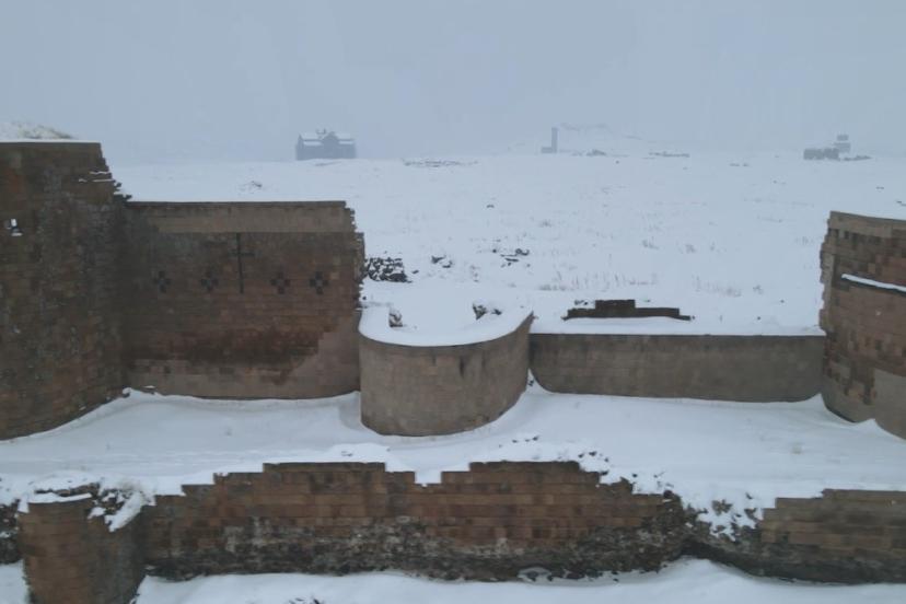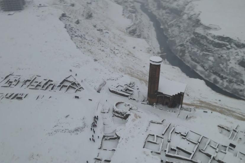 Tarihi İpek Yolu üzerinde yer alan ve geçmişte birçok medeniyete ev sahipliği yapan Ani Ören Yeri’ni 2025 yılında 156 bin 625 kişi ziyaret etti. 2026 yılının ilk üç ayında ise 42 bin kişi bölgeyi gezerek tarihi atmosferi yerinde deneyimledi. Mart ayının sonlarına beyaza bürünen ören yeri, havadan görüntülendi.
