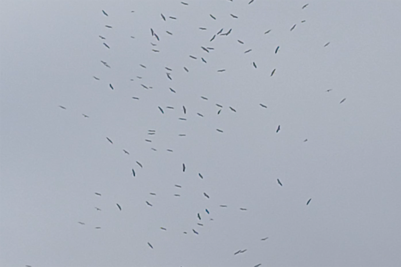 Konya’da baharın habercisi olarak bilinen leylekler sürü halinde gökyüzünde görüntülendi.