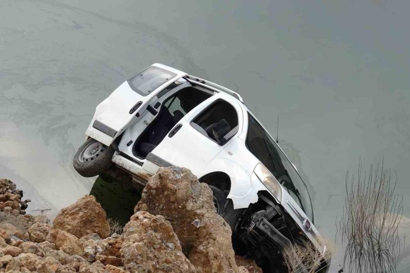 Malatya’da kontrolden çıkan araç gölete düştü