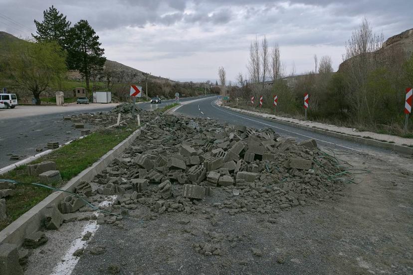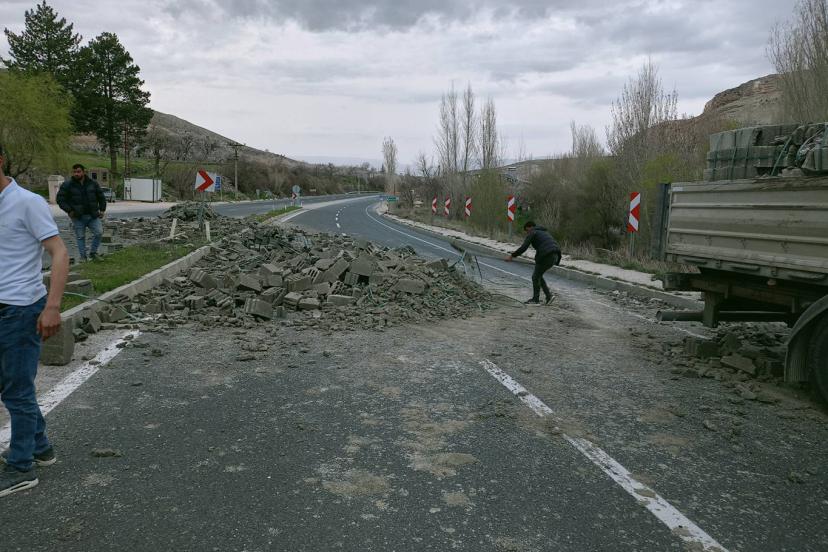 Yola dökülen malzeme nedeniyle trafik, bir süreliğine durduruldu.