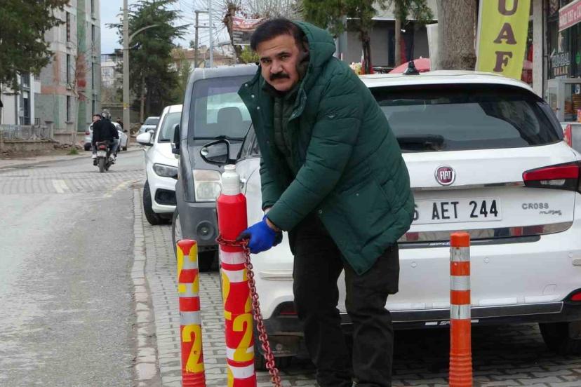 "Mülküm" diyerek kaldırımı dubalarla kapattı