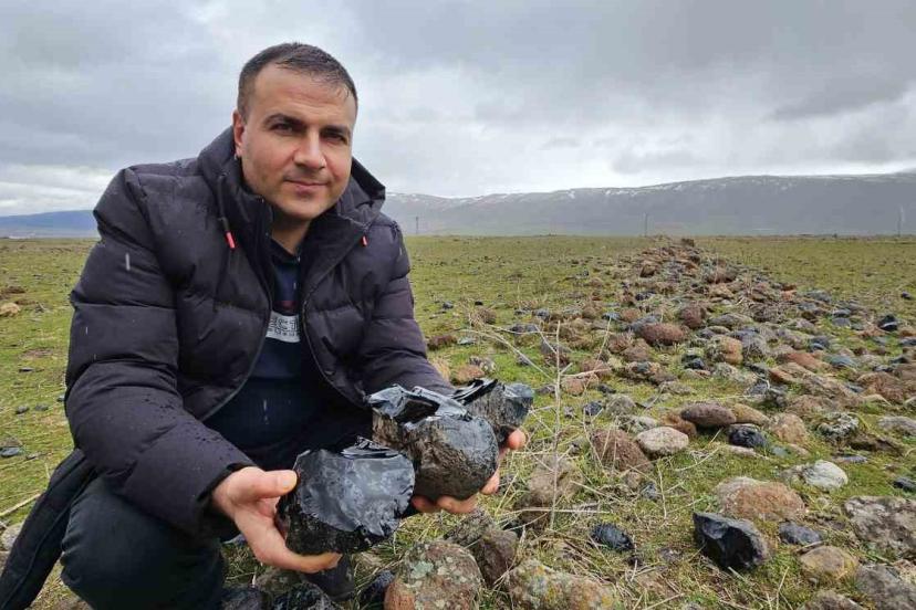 Bitlis’in Güroymak ilçesine bağlı Gölbaşı beldesinin Nemrut Kalderası eteklerinde bulunan obsidyen taşları ve diğer değerli t...