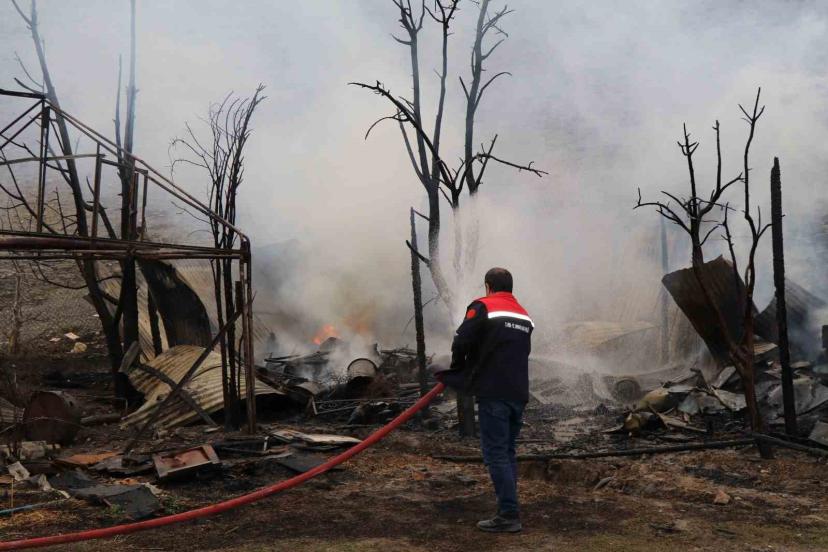 Oltu ilçesinde elektrik kontağından çıktığı değerlendirilen yangında arı kovanları ve tarımsal ekipmanlar yanarak kül oldu.