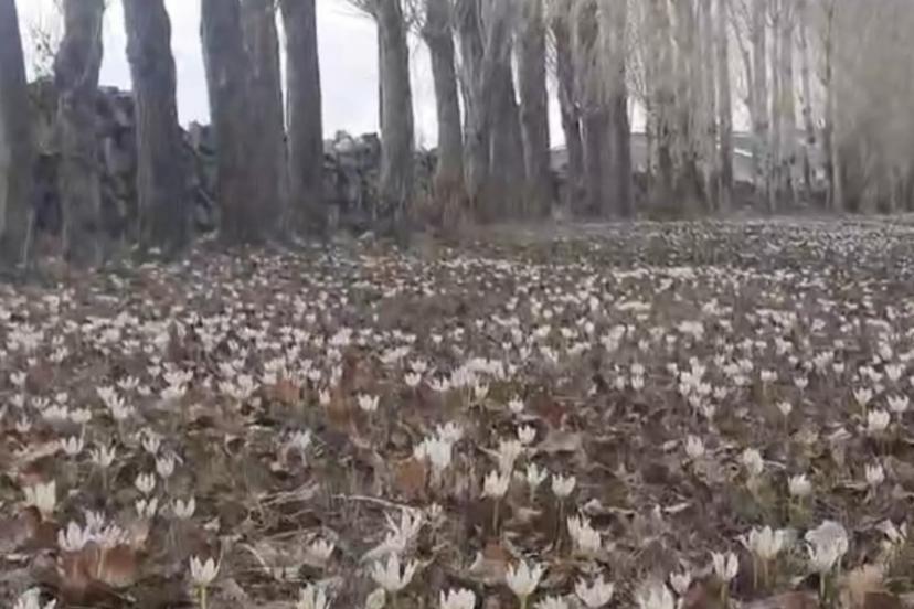 Van’ın Özalp ilçesinde havaların ısınmasıyla birlikte baharın habercisi olan çiğdemler çiçek açtı.