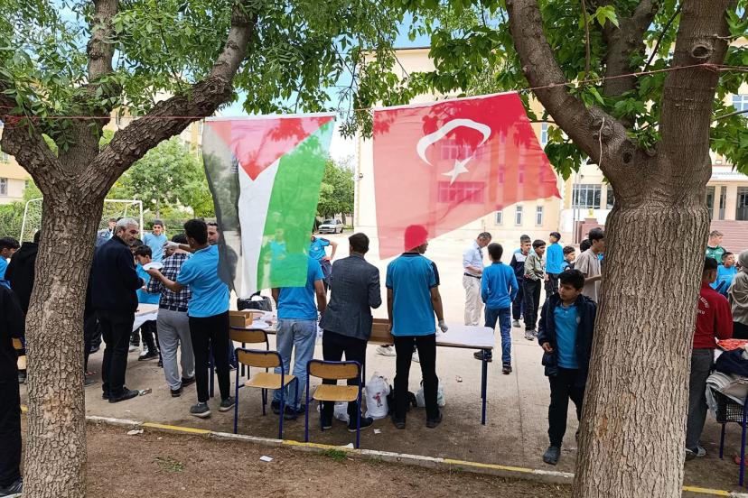 Şanlıurfa’nın Haliliye ilçesinde bulunan Mehmet Zahid Kotku Anadolu İmam Hatip Lisesi’nde, Gazze’ye destek amacıyla kermes düzenlendi.