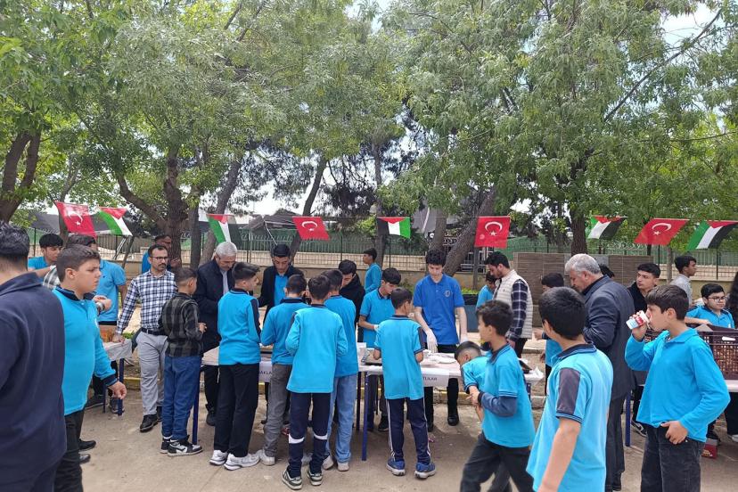 Haliliye ilçesindeki Mehmet Zahid Kotku Anadolu İmam Hatip Lisesi’nde düzenlenen kermeste öğrenciler, öğretmenler ve veliler Gazze için bir araya geldi.