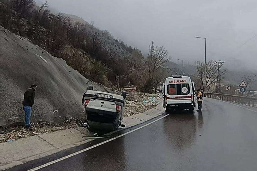 Edinilen bilgiye göre, Malatya'dan Adıyaman istikametine seyir halinde olan R.A. idaresindeki 46 U 4239 plakalı otomobil, Erkenek Tüneli çıkışında sürücünün direksiyon hakimiyetini kaybetmesi sonucu takla atarak ters dönü.