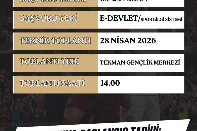Tekman İlçe Gençlik ve Spor Müdürü Fatih Arslan, "Sporun birleştirici gücünü ön plana çıkarmayı hedeflediğimiz turnuva ile mahallelerimiz arasında dostluk, kardeşlik ve fair-play ruhunu pekiştirmeyi amaçlıyoruz. Sahada centilmence mücadelelerin yaşanması, tribünlerde ise birlik ve beraberliğimizin güçlenmesi en büyük temennimizdir. 2026 Mustafa Çiftçi sezonu futbol turnuvası takvimi ise şöyle devam etmektedir Başvuru Tarihleri: 09 - 24 Nisan 2026; Turnuva Başlangıç Tarihi: 04 Mayıs 2026; Teknik Toplantı Tarihi: 28 Nisan 2026 Toplantı Yeri: Tekman Gençlik Merkezi; Başvuru Yeri: e-devlet / Spor Bilgi Sistemi. Tüm halkımızı bu coşkuya ortak olmaya ve takımlarımızın desteklemeye davet ediyoruz" diye konuştu.