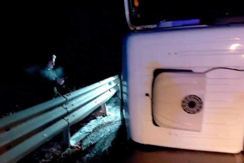 Tır yan yattı, yol trafiğe kapandı: 1 yaralı