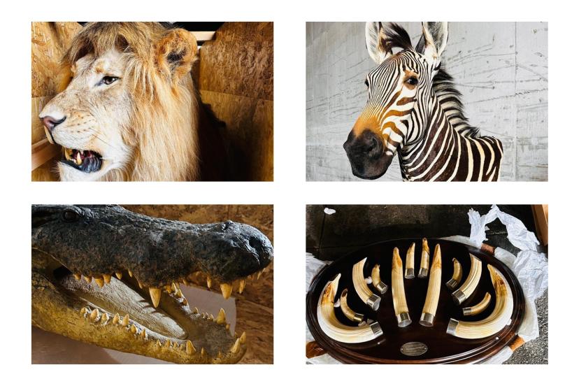 Yapılan kontrollerde aralarında aslan, Nil timsahı, dağ zebrası ve su aygırı gibi türlere ait parçaların bulunduğu toplam 19 kargoya el konuldu. (İLKHA)
