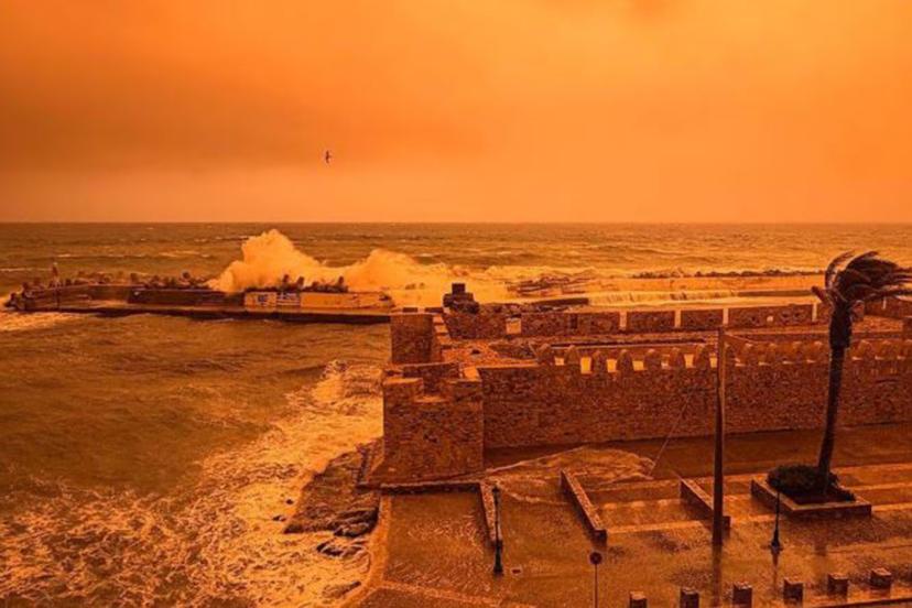 Yunanistan’ın Girit Adası semaları, Sahra Çölü’nden gelen tozların atmosferde yoğunlaşmasıyla koyu turuncu ve kan kırmızısı rengine büründü.